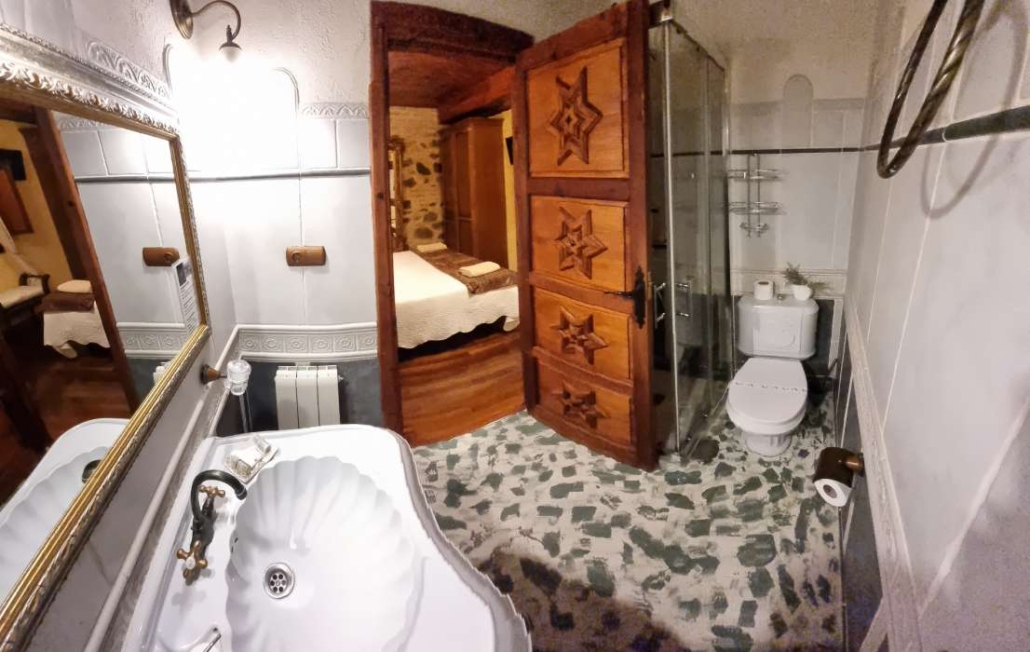 Nuestras habitaciones son pequeñitas. Con sabor a MEDIEVAL, representada por la arquitectura en la madera de sus techos y paredes que nos enseña las formas de construir de la época. Mobiliario TOLEDANO adaptado al tiempo sin perder nuestro pasado a lo mismo que sus lavabos en diseños exclusivos, fotografiados y reflejados en las revistas de interiorismo.